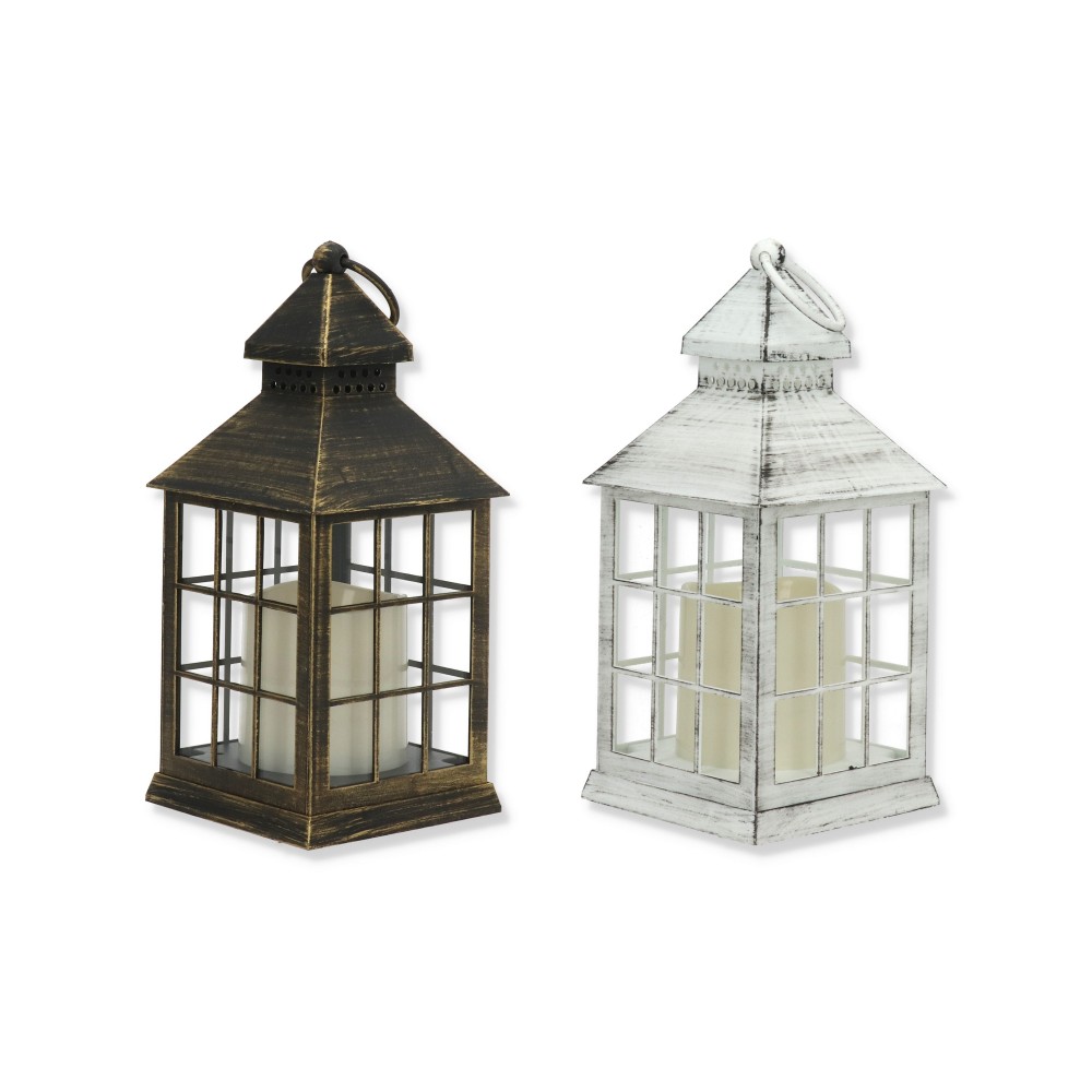 Krásná lucerna z plastu a skla s LED svíčkou.