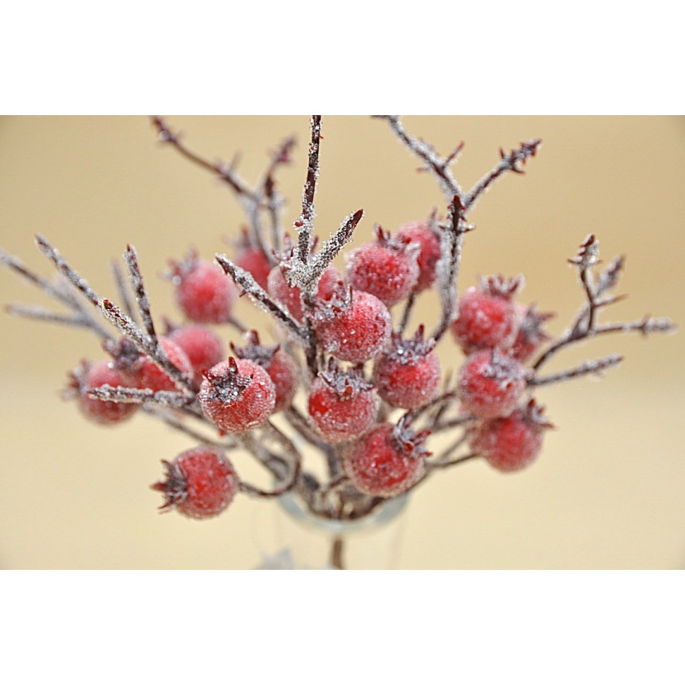 Větvička s jeřabinami ojíněná.