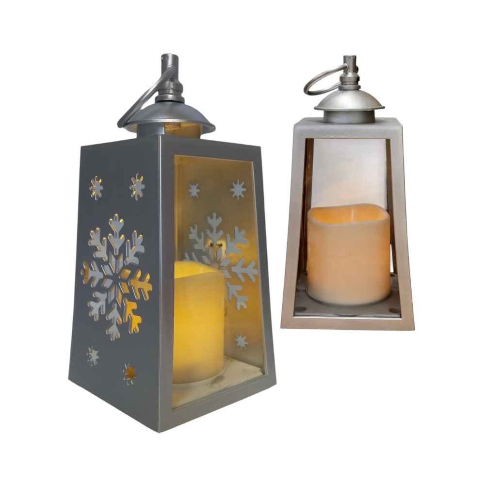 Vánoční lucerna z plastu a skla s LED svíčkou.